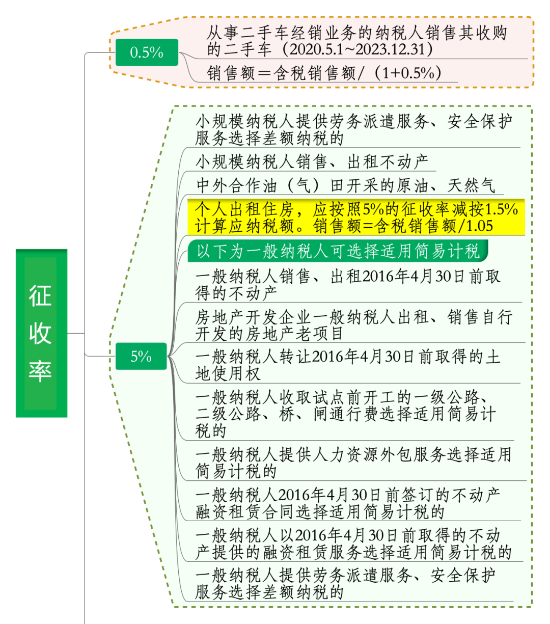 自2020年5月1日至2023年12月31日,从事二手车经销的纳税人销售其收购的二手车,由原按照简易办法依3%征收率减按2%征收增值税,改为减按0.5%征收增值税,并按下列公式计算销售额:销售额=含税销售额/(1+0.5%)(财政部 税务总局公告2020年第17号,国家税务总局公告2020年第9号)